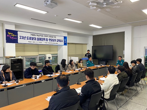 전남 화순군(군수 구복규)은 11월 17일 관내 폭설 시 신속한 제설작업을 통해 주민 통행 불편 사항과 안전사고 예방을 위하여 ‘겨울철 폭설 선제 대응을 위한 설해 대책 교육’을 실시했다.