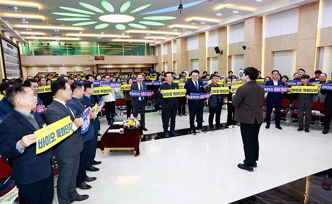 구복규 화순군수를 비롯한 200여 명의 화순군 직원들은‘바이오 특화단지, 최적지는 전남 화순’이라는 문구가 새겨진 카드를 들고 퍼포먼스를 펼치며, 특화단지 유치에 대한 강력한 의지를 표명했다.
