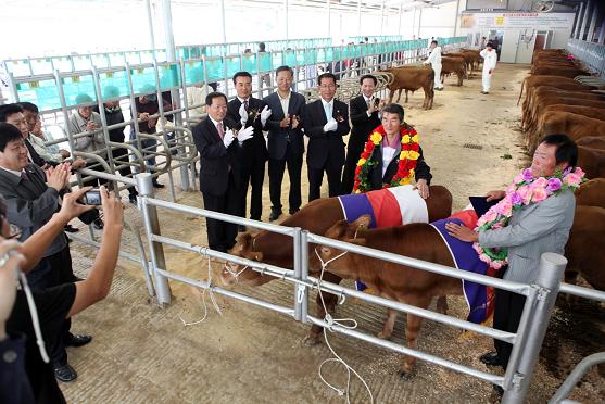 이날 최우수상을 수상한 문병화씨의 수송아지는 410만원에 낙찰돼 최고가를 기록했으며 문제성씨의 암송아지도 300만원에 팔렸다.