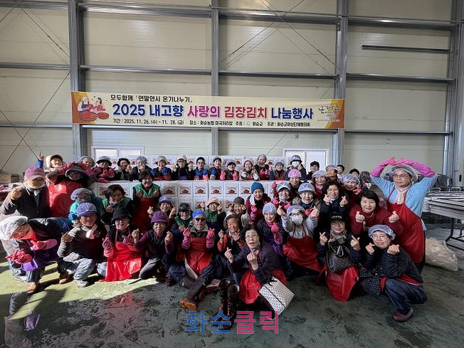 화순군(군수 구복규)은 지난 11월 26일부터 11월 28일까지 3일간 ‘2025 내고향 사랑의 김장김치 나눔 행사’를 추진하여 관내 취약계층 가구에 김장김치를 전달했다고 밝혔다.
