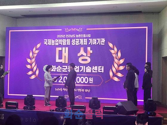 화순군(군수 구복규)은 지난 11일 전남농업기술원에서 진행된 2025년 전남 농업진흥사업 ‘국제농업박람회 종합평가’에서 대상을 수상했다고 밝혔다.