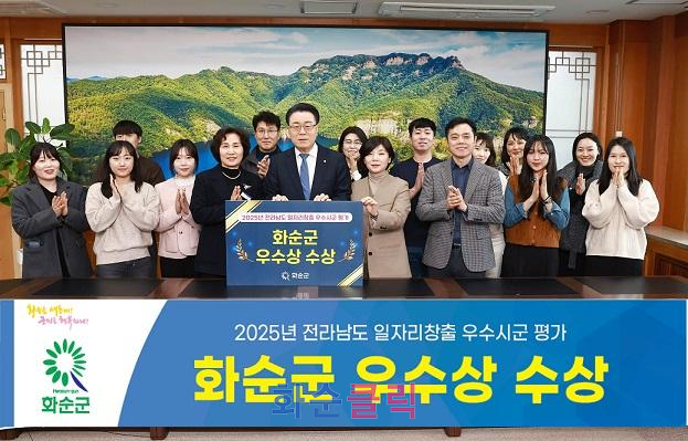 화순군(군수 구복규)은 지난 24일 ‘2025 일자리·경제 한마당’ 행사에서 일자리 창출 우수 시·군 평가 부문 ‘우수상’을 수상했다고 밝혔다.
