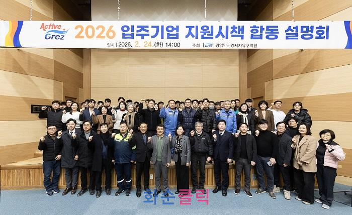 광양만권경제자유구역청(청장 구충곤, 이하 광양경자청)은 24일 전남테크노파크 대강당에서 ‘2026년 입주기업 지원시책 합동 설명회’를 개최하고, 광양만권 입주기업을 대상으로 한 분야별 지원정책을 종합 안내했다고 밝혔다.