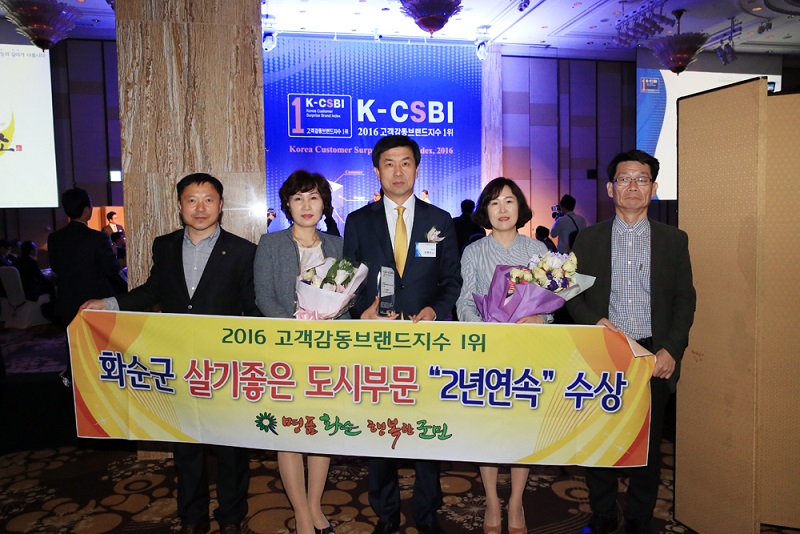화순군(군수 구충곤)이 살기 좋은 도시부문에서 ‘2016 고객감동브랜드 지수(K-CSBI)’ 1위에 2년 연속 선정됐다.