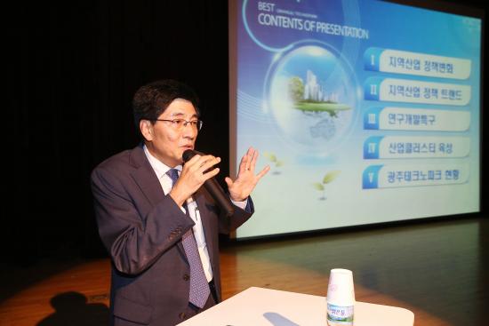 배정찬 원장은 우리나라 지역 산업 육성정책의 시대별, 정권별 변화 추이를 설명하며, “지금은 지역균형 발전을 위한 지방 분산형 정책 특히 지역주민이 체감하는 지역에 뿌리를 둔 고용 창출형 산업을 집중 육성하고 있는 추세”라고 말했다.