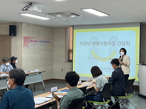 화순군정신건강복지센터(센터장 김경환, 이하 센터)는 지난 26일 이장 10여 명이 참석한 가운데 ‘이장과 함께하는 생명사랑사업 간담회’를 열고 20개 마을과 생명사랑마을 조성 업무협약을 맺었다.
