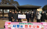 사회 화순클릭2021. 02.04화순군에 어려운 이웃들을 위한 사랑 나눔 릴레이가 이어지고 있다. 화순군에 따르면, 지난 2일 대한한돈협회 화순군지부(지부장 대행 박운선)와 (사)전국한우협회 화순군지부(지부장 임봉택)에서 각각 돈육 306상자(612kg·3060인분)와 한우 19상자(114kg)를 후원했다고 밝혔다. 4일에는 화순백신산업특구에 있는 한국화학융합시험연구원(KTR) 헬스케어연구소(소장 류재상)에서 소향원에 후원금 100만 원을 전달했다. 화순군은 전달된 기부 물품을 동절기 복지 사각지대 대상자와 긴급지원 위기가구 등에 우선 지원할 계획...
