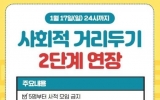 사회 화순클릭2021. 01.04화순군은 정부 방침에 따라 사회적 거리두기 2단계와 연말연시 특별방역 대책을 4일부터 17일까지 2주간 연장하고 강화한 방역 대책을 시행한다고 밝혔다. 이번 조치로 그동안 수도권에만 적용됐던 ‘5명 이상 사적 모임 금지’ 조치가 전국으로 확대됐다. 숙박시설은 객실 수의 3분의 2 이내로 예약이 제한되고 객실 정원의 초과 인원수용도 금지됐다. 이와 함께 ▴식당 오후 9시~오전 5시 포장‧배달만 허용 ▴카페 영업시간 전체 포장‧배달만 허용 ▴실외 겨울 스포츠 시설(...