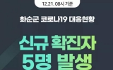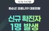 사회 화순클릭2020. 12.19화순군은 19일 관내에서 코로나19 확진자 1명이 추가 발생했다고 밝혔다. 화순 29번(전남 496번)으로 분류된 확진자는 18일 몸살감기, 미각손실 증상이 있어 화순군 보건소에서 검체를 채취했고, 19일 새벽 최종 양성 통보를 받았다. 화순군은 확진 통보 즉시 확진자의 거주지와 방문 장소 등을 방역 소독 완료했고, 확진자는 강진의료원으로 격리 입원 조치했다. 군은 현재까지 파악한 접촉자 9명에 대한 진단 검사를 실시했다. 그 결과, 5명은 음성 판정을 받았고 4명은 결과를 기다리고 있다. 군은 전남도 역학조사...