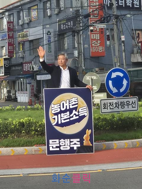 문행주 더민주혁신회의 화순상임공동대표는 지난 9월 29일부터 3일째 농어촌 기본소득법 제정을 촉구하는 가두 캠페인을 진행하고 있다.
