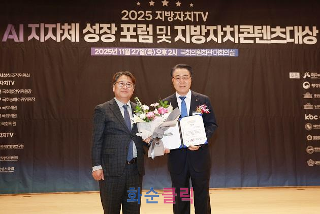 화순군(군수 구복규)은 27일 국회의원회관에서 열린 ‘2025 지방자치 콘텐츠 대상’ 시상식에서 문화관광 부문 ‘대상’ 수상의 영예를 안았다고 밝혔다. 작년 복지주민참여 부문 대상에 이은 두 번째 수상이다.
