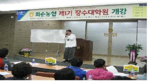 화순농협(조합장: 이형권)은 03일 농협 문화센터 대강당에서 제1기~6기 장수대학 수료생을 대상으로 152명을 선발하여 “제1기 장수대학원”의 개강식을 개최 하였다