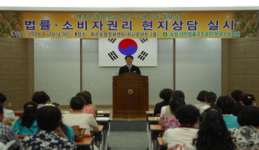 □ 이번에 열리는 『농협 이동상담실』은 대한법률구조공단의 변호사 하기재와 한국소비자원의 교수 서정희 등의 전문가로부터 강의와 개별상담이 있게 된다. 상담과 피해구조 접수를 원하는 주민은 직접 방문하거나 전화를 통하여 상담이 이루어졌다.