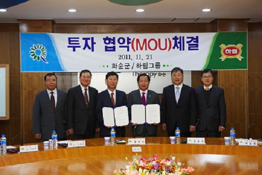 화순군은 지난 15일 (주)삼한스포츠와 51억원의 투자협약을 체결한데 이어, 21일에는 국내 식품산업 대표기업으로 국내닭고기 생산 1위 업체인 하림그룹(회장 김홍국)과 화순군청 소회의실에서 투자협약을 체결했다.