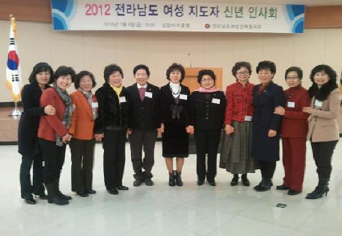 ‘전남 여성 지도자가 뭉치면 그 힘은 도전과 변화의 힘이 되고 전남 여성이 뭉치면 그 힘은 화합과 상생의 힘이 된다’는 내용을 가진 2012 전라남도 여성지도자 신년 인사회가 지난 6일 목포 신안비치호텔 바하홀에서 전남 22개 시․군 여성지도자가 참석하는 가운데 성황리에 개최되었다.
