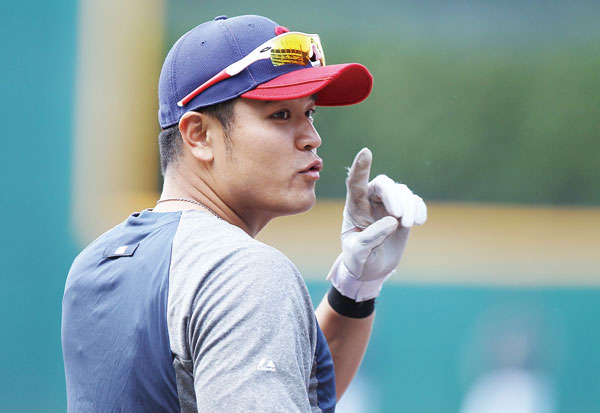“상상만 해도 흥분되는 장면이다. 이전에 박찬호 선배님이나 서재응 선배님과 맞대결을 펼친 적이 있었지만 현진이와는 처음이고, 또 가장 친한 후배이기 때문에 남다른 의미와 경험이 될 것이다. 승패를 떠나 서로가 베스트 플레이를 펼치는 게 팬들에 대한 예의이고, 프로다운 자세라고 생각한다. 봐주기? 절대 없다. 그건 현진이도 마찬가지일 것이다. 친한 건 친한 것이고, 야구장에서는 상대팀 투수와 타자의 관계일 뿐이다. 광저우아시안게임 때 현진이의 투구를 지켜보며 그 공을 상대해보고 싶다는 생각이 들었다. 그런데 이렇게 빨리 이뤄질 줄 몰랐다. 만약 현진이랑 맞붙게 된다면 나나 현진이한테도, 그리고 한국의 야구팬들한테도 기억에 남을 만한 명장면이 될 수 있도록 노력할 것이다.”