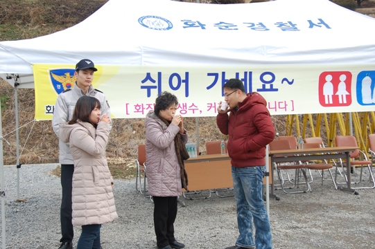 화순지역을 통과하는 운전자들에게 장시간 도로변에서 시달려야 하는 힘든 피로를 해소키 위해 “쉬어가세요! 교통쉼터”를 운영하여 화장실, 생수, 커피, 사탕 등 편의를 제공하였다.