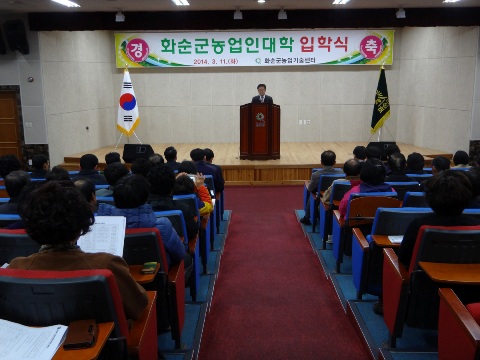 화순군(군수 홍이식)은 지역농업을 이끌어갈 선도농업인 양성을 위해 유기농복숭아․유기농블루베리반 2개 과정 114명으로 진행되는 2014년 화순군농업인대학 제7기 입학식을 11일 화순군농업기술센터에서 개최했다.