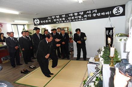 지난 23일부터 민주당 화순위원회사무소에서 분향소을 차려놓고 노 前대통령 을 애도 할수있게 봉사 하고있는