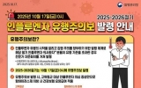 탑뉴스 화순클릭2025. 10.23화순군(군수 구복규)은 질병관리청이 지난 17일 인플루엔자 유행주의보를 발령함에 따라, 호흡기 감염병 예방 수칙 준수 및 인플루엔자 예방접종을 당부했다고 23일 밝혔다. 질병관리청에 따르면 인플루엔자 의사환자 표본 감시 결과 의료기관에서 확인된 최근 4주간 의사환자 분율*(외래환자 1,000명당)은 △38주 차 8.0명 △39주 차 9.0명 △40주 차 12.1명 △41주 차 14.5명으로 유행 기준(9.1명)을 이미 넘어섰으며, 지난해보다 약 2개월 이른 시점에 발령됐다. (* 외래환자 1천 명당 ...