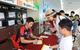 탑뉴스 김동국 기자2015. 08.19윙크보이 배드민턴 스타 이용대 선수의 팬 사인회가 18일 하니움문화스포츠센터 로비에서 성황리에 열렸다. 『이용대 올림픽제패기념 2015 전국학교대항 배드민턴 선수권대회』가 13일부터 19일까지 열리고 있는 가운데 이용대 선수는 인도네시아 ‘2015 세계 개인 배드민턴 선수권 대회’를 마치고 귀국, 고향을 찾아 300여명의 팬들과 만났다. 이 선수는 이에 앞서 이날 오전 화순군청을 방문해 구충곤 군수와 티타임을 가졌다. 구 군수는 “이 선수가 배드민턴의 메카인 화순을 대내·외적으로 알리는데 크게 이바지하고 있다...