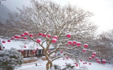 포토 화순클릭2014. 12.22화순 만연사 대웅전 앞 나무에 매달린 연등과 눈꽃이 어우러진 모습이 이채롭다.