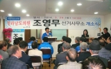 탑뉴스 화순클릭2014. 03.31○ 새정치 민주연합에 조영무 도의원 (화순 제1선거구)예비후보선거 사무소 개소식이 29일 오후 2시 화순군 화순읍 중앙로 93(2층)에서 성황리에 마치고 본격적인 선거운동에 들어갔다. ○ 이날 개소식에는 주승용 국회의원을 비롯한 전․현직 도의원 및 군의원, 그리고 민주당 당직자와 정당관계자,화순군 새마을운동본부 정병수 지회장을 비롯한 각급 사회단체장 그리고 조백환 화순군 노인회장을 비롯한 지역원로들과 조규봉 화순향교 전교를 비롯한 유림들,신영호 재광 이서면 향우회장을 비롯한 출향인사 등 500여명의 지지자들이 함께해...