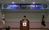 탑뉴스 화순클릭2014. 03.04전남도립대학교(총장 구충곤)는 3일 오전 강당에서 박준영 도지사와 전남도의회 의원, 관내 각계 유관 기관장, 학부모, 내•외빈들과 신입생 등 1,000여명이 참석한 가운데 2014학년도 입학식을 가졌다. 전남도립대학교는 2014학년도에 800명이 입학하여 정원 765명 대비 105%의 신입생 충원율을 달성하였으며, 이날 전체수석을 차지한 유아교육과 김성희씨와 전체차석인 유아교육과 조다연씨를 비롯한 각 과 수석 등 22명에게 장학금이 수여됐다. 구충곤 총장은 식사에서 “도립대는 대학의 문을 활짝 열어 ...