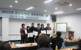 포토 화순클릭2013. 12.19화순군(군수 홍이식)은 지난 13일 농업기술센터에서 화순군 강소농가 60여명이 참석한 가운데 강소농 지원사업 성과평가회를 가졌다. 이번 성과평가회는 2013년 강소농 사업 전반에 대한 사업성과를 발표하고 평가하여 강소농 우수사례 확산, 공유함으로써 강소농가 참여 의지 상승과 사업의 완성도를 높이기 위해 실시했다. 이날 행사는 강소농가별 기술수준과 경영상태 진단·처방과 지속적인 농가컨설팅으로 농장, 브랜드 네이밍 및 쇼핑몰 구축 등 가시적인 성과를 도출한 강소농 정밀컨설팅에 대한 성과보고로 시작하였다...