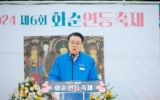 탑뉴스 백남현 기자2024. 05.04[화순클릭] 화순군(군수 구복규)은 지난 2일 의회동 4층 대회의실에서 직원 250여 명이 참석한 가운데 5월 정례조회를 개최했다. 이날 행사는 군정발전 유공자에 대한 표창, 직원들이 직접 제작한 청렴 캠페인과 김용임의 ‘적벽 가는 길-’ 가요 동영상 시청, 직원 5분 스피치 등으로 다채롭게 진행됐다. 특히 이날 조회에서는 전라남도 자치행정국 강경문 고향사랑과장이 전남 사랑애(愛) 서포터즈 사업에 대해 홍보하는 시간을 가졌고, 오병식 이장단장을 비롯한 이서면 이장단이 특별 초청돼 자리를 ...