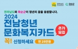 탑뉴스 백남현 기자2024. 05.08[화순클릭] 화순군(군수 구복규)은 5월 13일부터 6월 30일까지‘전남청년 문화복지카드 지원사업’ 대상자를 추가 모집한다고 밝혔다. ‘전남청년 문화복지카드 지원사업’은 전라남도 내 거주하는 청년의 문화생활 향유 및 자기계발 기회를 제공하기 위해 문화복지비 연 25만 원을 지원하는 사업이다. 2022년 5월 13일 이전부터 전남 도내에 주소를 두고 2년 이상 계속 거주하고 있는 19~28세 청년(1996년~2005년 출생자)이면 신청할 수 있으며, 3월 신청자 중 거주기준 부적합으로 제외된...