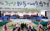 남도민의 전통예술 잔치인 ‘제37회 전남민속예술축제’가 27일부터 29일까지 3일간 테라피 화순에서 도내 22시군 37개팀 1,700여명이 참여한 가운데 아쉬운 막을 내렸다. 이번 행사는 농악 18팀, 민요 5팀, 민속놀이 14팀이 출연하여 각 지역의 향토민속예술을 펼쳐보였으며, 멋과 흥이 한데 어우러진 한마당 종합 문화 축제로 성대히 치러졌다. 경연결과 일반부에서는 영광의 『영광서남면들노래』가, 청소년부에서는 진도의 “조도닻배노래』가 으뜸상을 수상하여 내년도 전국민속예술축제에 전라남도를 대표하여 참가하게 된다 ...