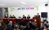 탑뉴스 화순클릭2010. 01.16경인년 새해 군정 주요 운영 방안으로 소통을 강조하며 “3共(공유.공감대.공동대처) 시대를 열자”고 화두를 던졌던 전완준 화순군수가 연두 읍.면 순회방문에서 이를 실행, 주민들로부터 뜨거운 박수를 받았다. 전 군수는 14일 오후 2시 춘양면사무소 2층 회의실에서 가진 첫 번째 연두 순회방문에서 “비전 1030이라는 확실한 목표를 제시하며 숨 가쁘게 달려온 지난 3년간을 돌이켜보면 많은 성과가 있었다”며 “그 중에서도 지역별 특화사업을 착실하게 추진했던 점이 가장 큰 보람이었다”고 회고했다. “경제.사회.복지.교육....