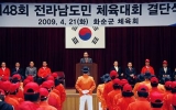 정치 화순클릭2009. 04.22제48회 도민체전에 출전하는 화순군(군수 전완준) 선수단이 21일 결단식을 갖고 종합 7위 목표를 향해 영광으로 출발했다. 화순군 선수단은 21일 오후 1시 화순군청 신관4층 대회의실에서 선수단 273명(선수 192, 임원 81) 결단식을 갖고 차기 대회 개최지로서의 위용에 걸맞는 성적을 거둘 것을 결의했다. 화순군 체육회장인 전완준 군수는 선수단에게 "성적도 중요하지만 차기 개최지로서 매너와 응원에서도 모범을 보여 화순의 좋은 이미지를 심어 달라"고 격려했다. 전 군수는 모든 선수나 임원이 경기장 시설...